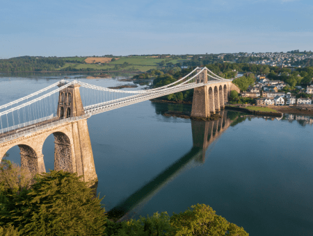 Views of the Menai bridge and blue skies