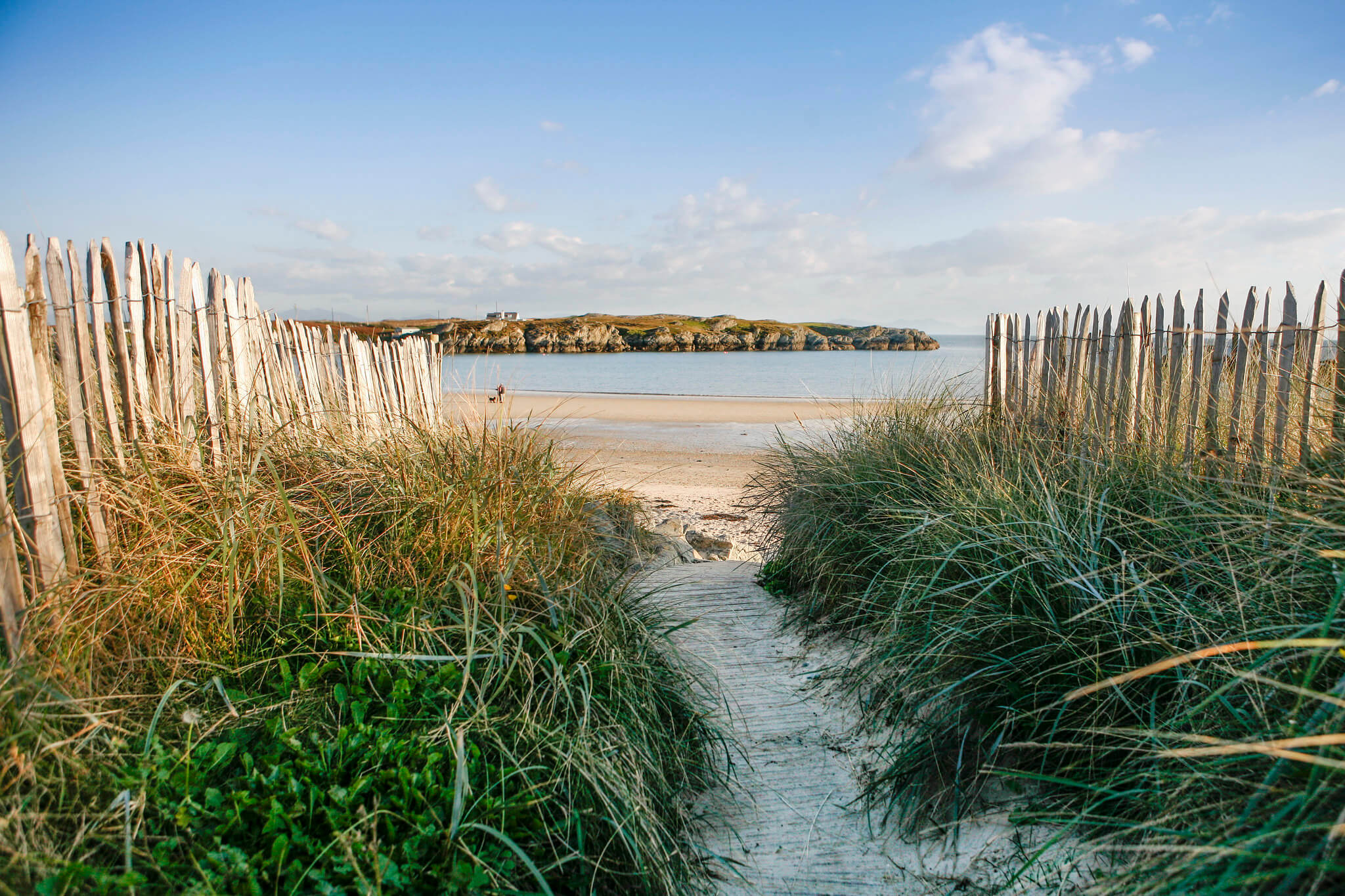 1. With your back to the church, turn right down the road, then right again, signposted ‘The White Eagle’. The first part of the walk is down a traditional ‘sunken lane’ which winds its way to the beautiful white sandy beach at Borth Wen.