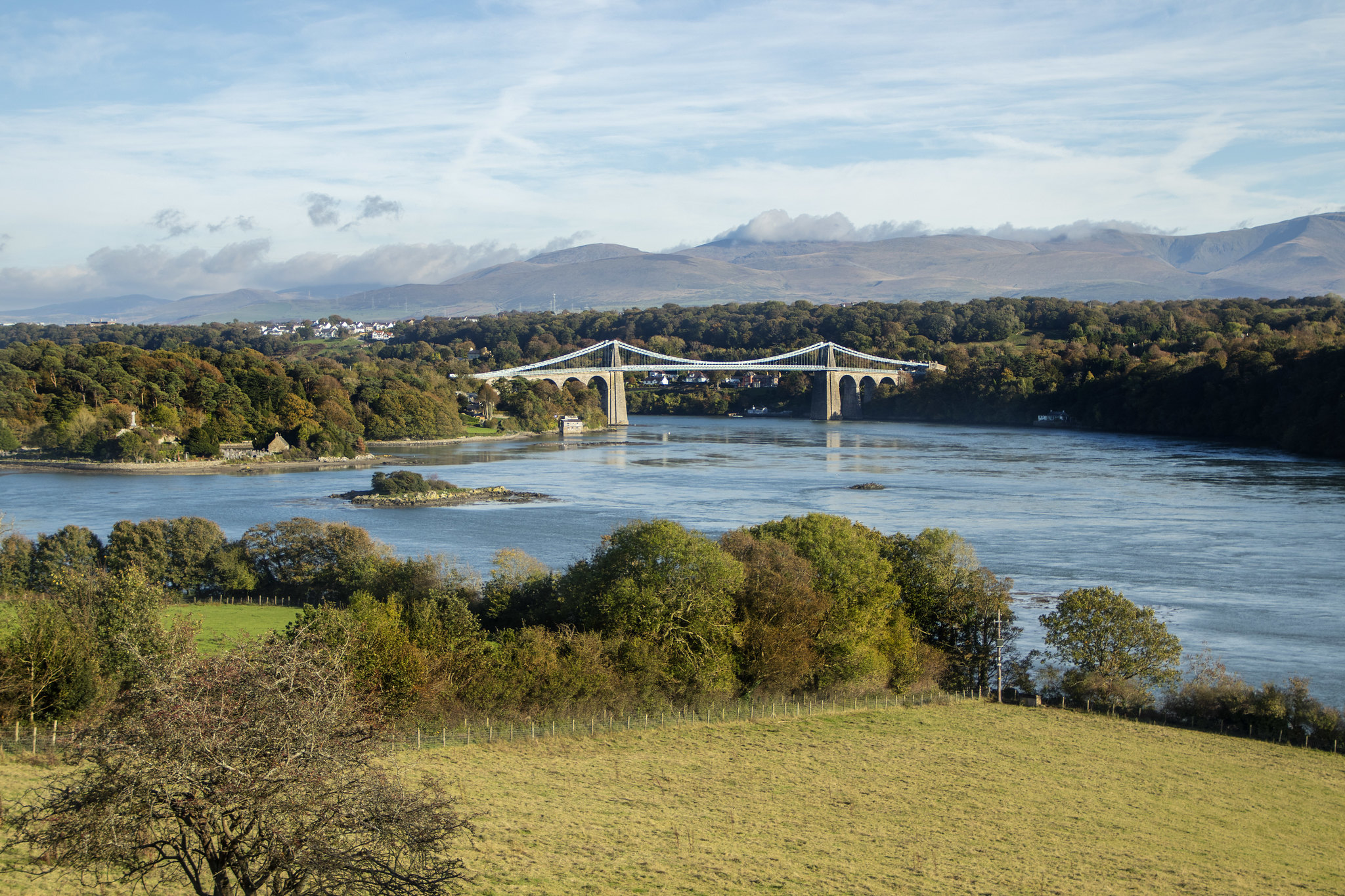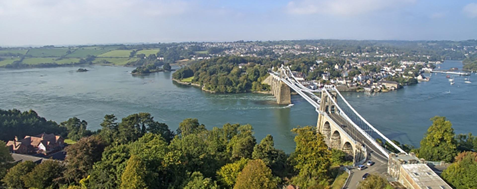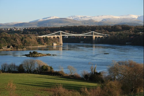 - Spectacular Bridges. Anglesey boasts two iconic bridges. The Menai Suspension Bridge, built in 1826 and pioneered by Thomas Telford, and the Britannia Bridge, originally constructed in 1850 to cater to the rising popularity of rail travel. After a fire in 1970, the Britannia Bridge was rebuilt. The bridge originally had four imposing stone lions at its entry points, which can now only be seen from the trains below or by walking along the Treborth Coastal/Forest Path. Why not try the ‘Bridge to Bridge’ walking route?